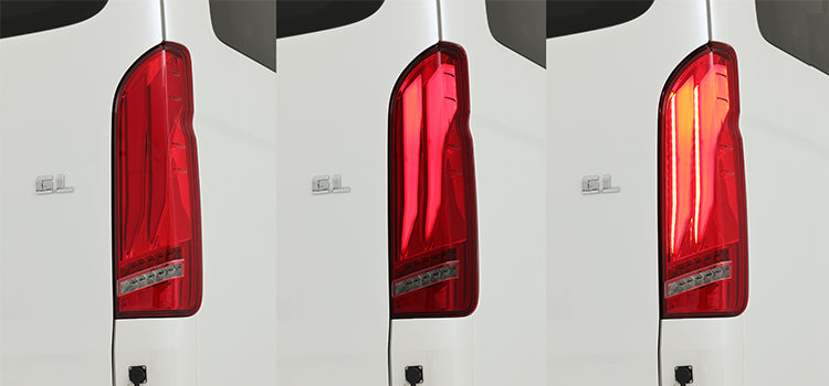 リアビューをより個性的かつスポーティに演出する、FLEXオリジナルのラムダ LEDテールランプ。レッドレンズにレッドクロームインナーを組み合わせ、消灯時から鮮やかな赤が際立つ印象的なデザインに仕上げています。点灯時には高輝度のレッドバーLEDが2本浮かび上がり、視認性とドレスアップ性を高次元で両立。ヴァレンティのジュエルLEDシリーズならではの造形美と、オープニング&エンディングアクションも魅力です。存在感あるリアスタイルを求めるハイエースオーナーにおすすめのモデルです。