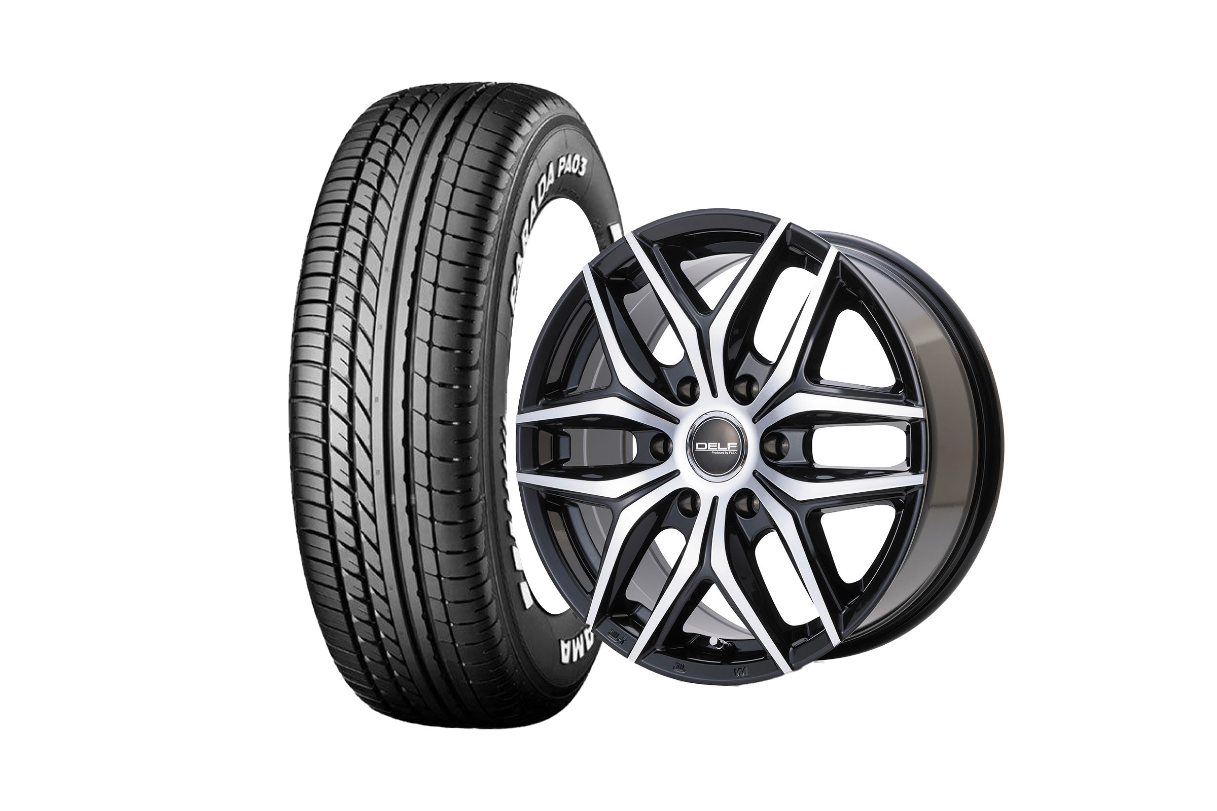 18インチホイールと精悍なブラックレター仕様PA03の4本セット。