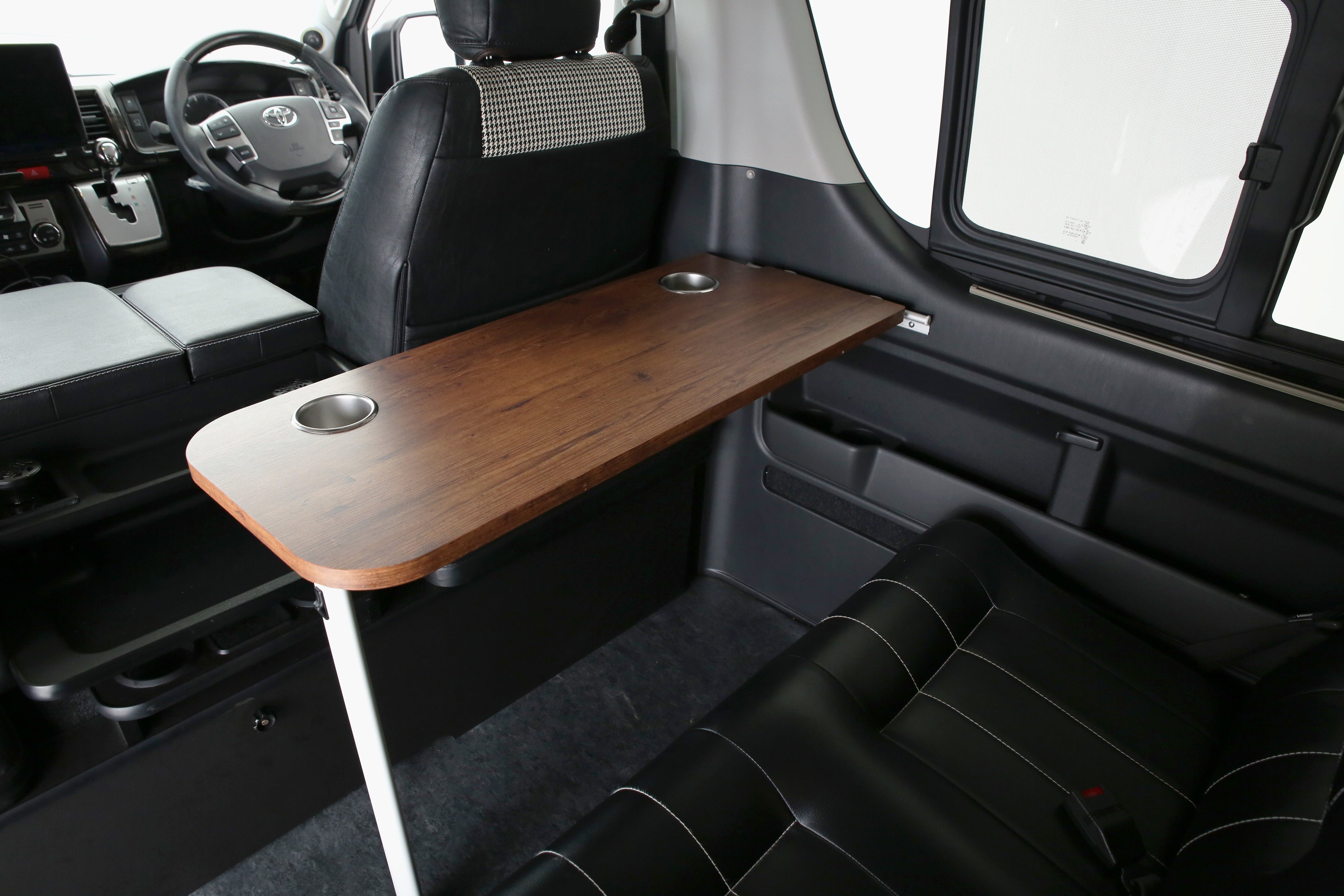 車内空間をもっと快適にする「zero-WALL-table(ゼロウォールテーブル)」。ワゴンGL専用設計で、2列目・4列目に対応した使い勝手抜群の車内テーブルです。
