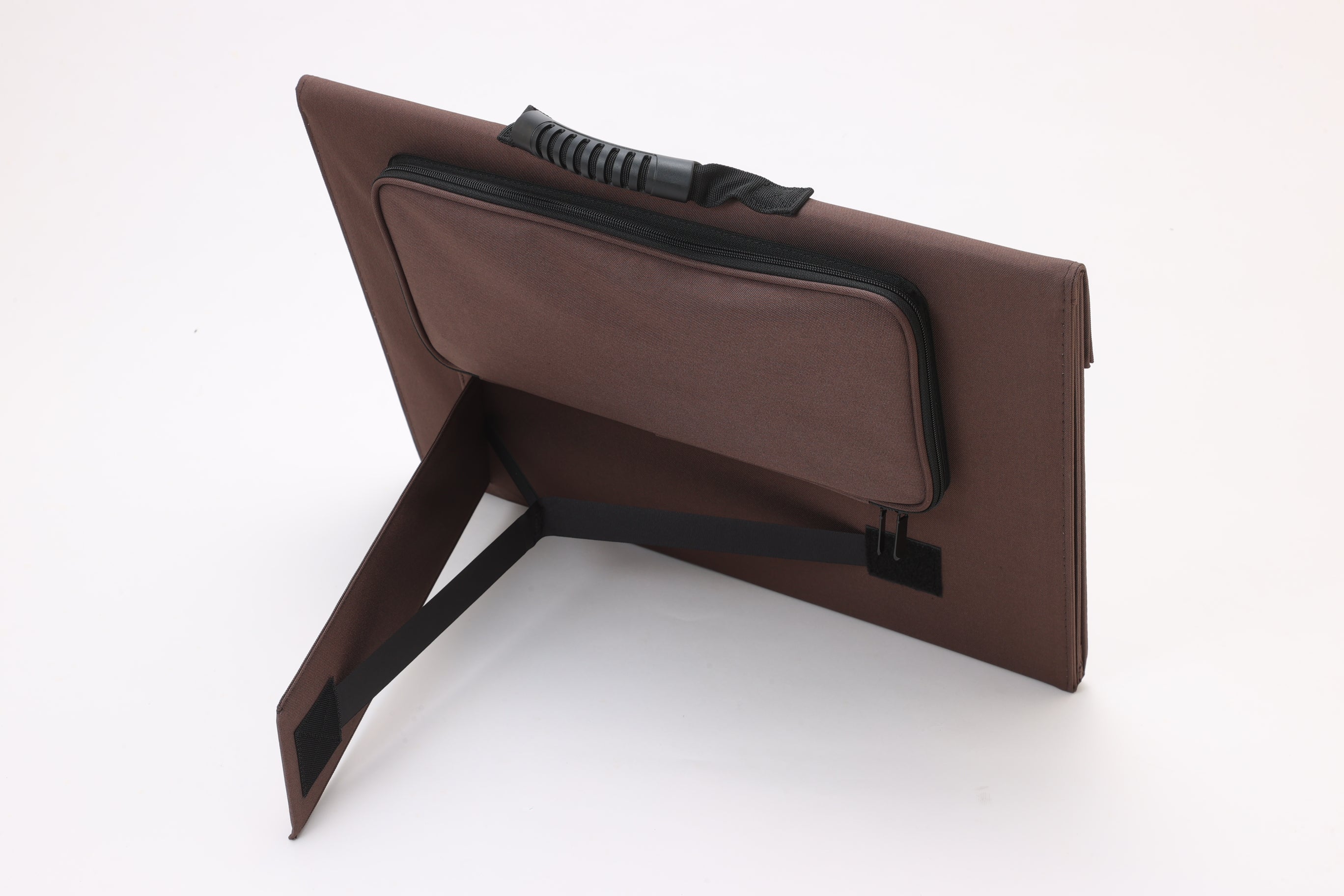 高性能なシリコン系単結晶パネルを採用し、最大20%の高い発電効率でコンパクトでもしっかり発電できます。 専用バッグ付きで持ち運びも簡単。