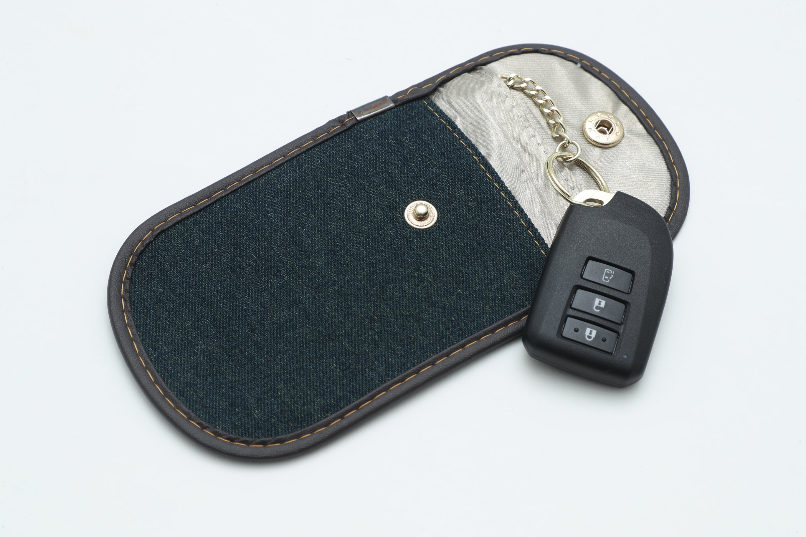 スマートキーを使わないときにポーチにスマートキーを入れておけば、電波を遮断して車両の不正解錠を防げます。