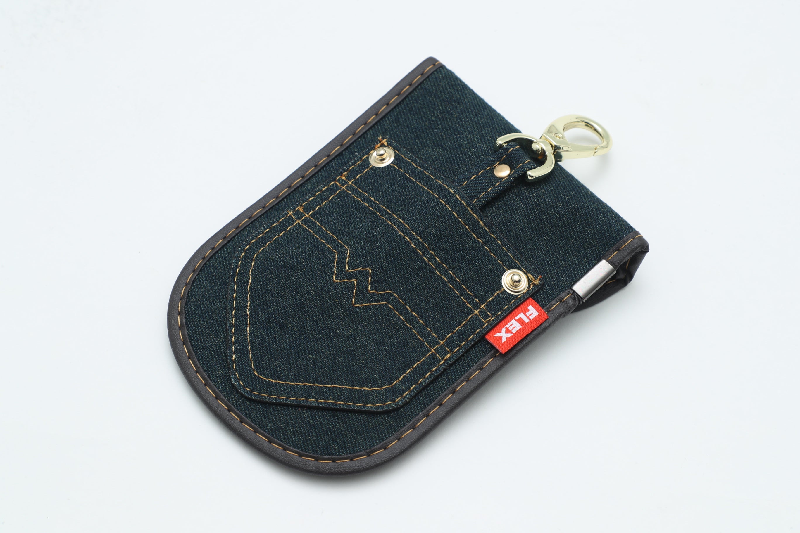 ヴィンテージデニムを使用し、FLEXオリジナルロゴ入りで、カジュアルかつ実用的。