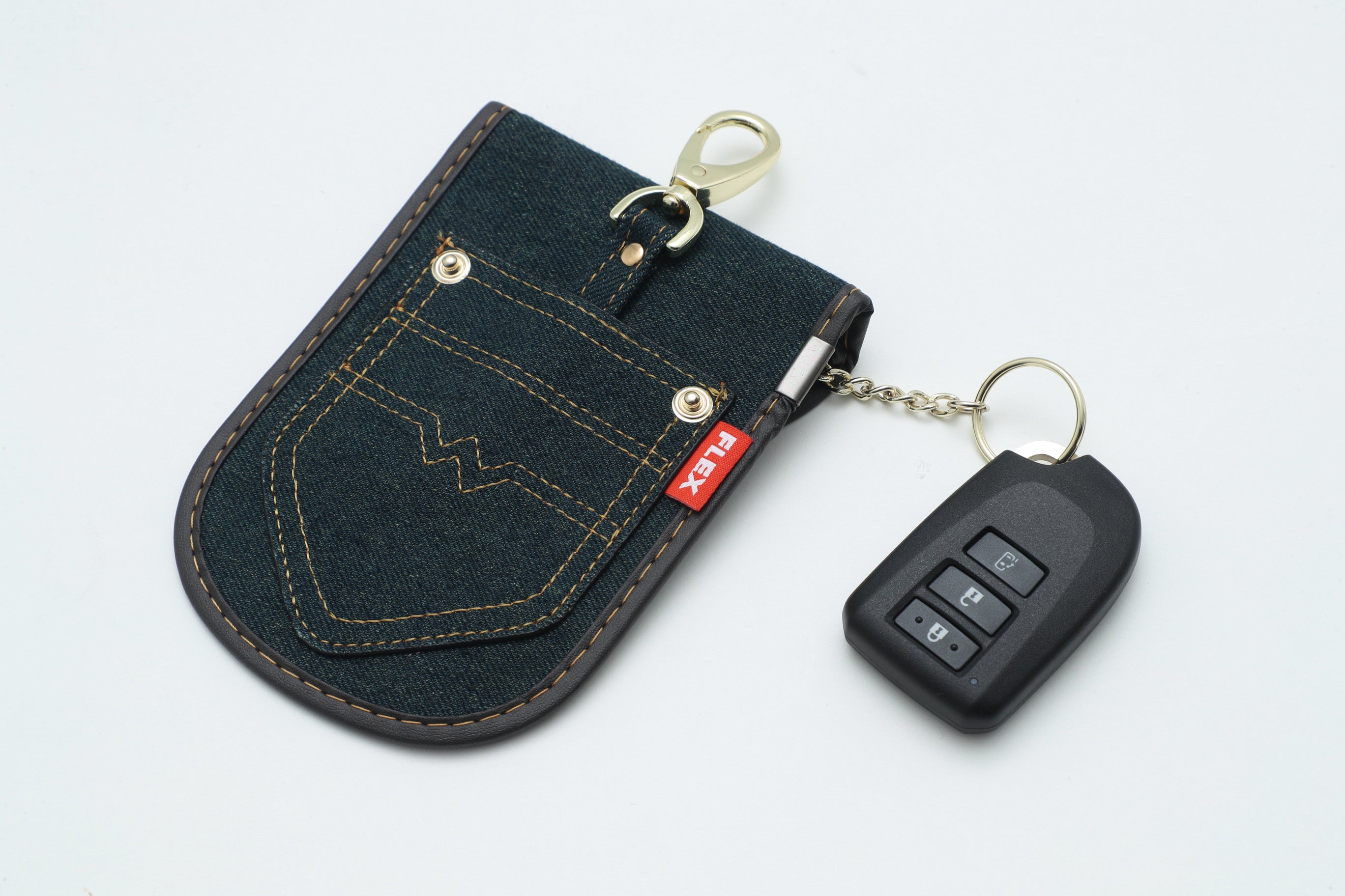 スマートキー車両を狙った盗難手口「リレーアタック」への対策として開発された、電波遮断機能付きポーチです。