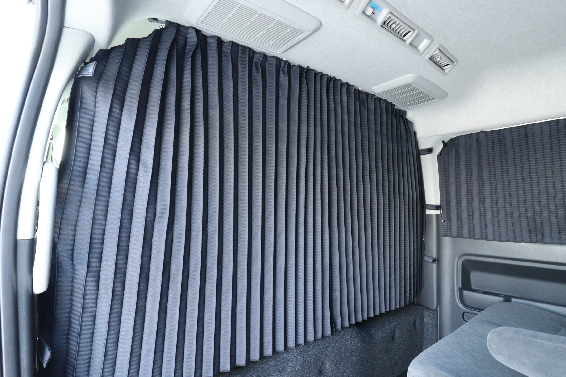 ハイエース200系 ミドルルーフ専用設計のオリジナル間仕切りカーテン。