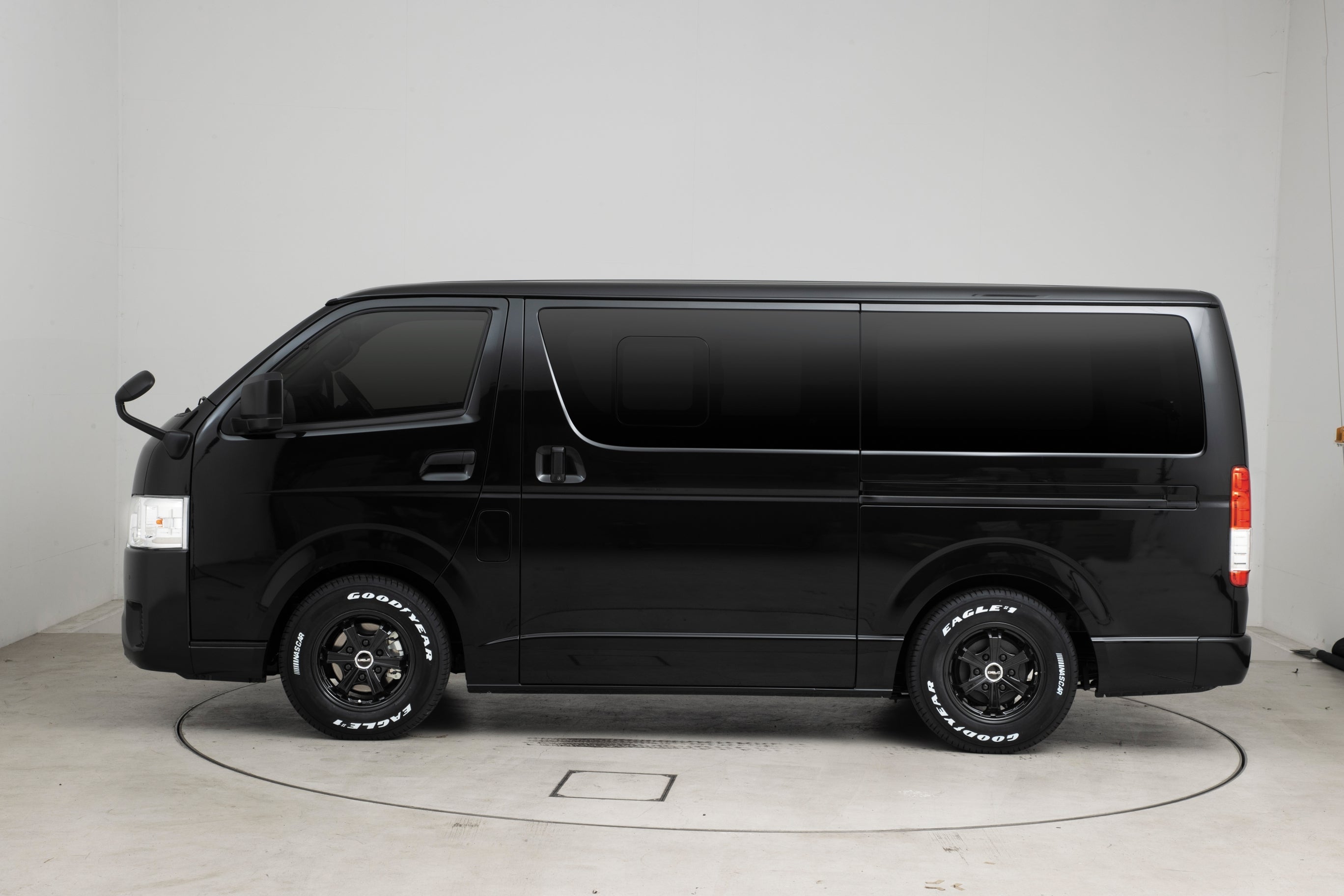 グロスブラックの深いツヤが足元を上質に仕上げ、商用車らしさを抑えた洗練された印象をプラスします。