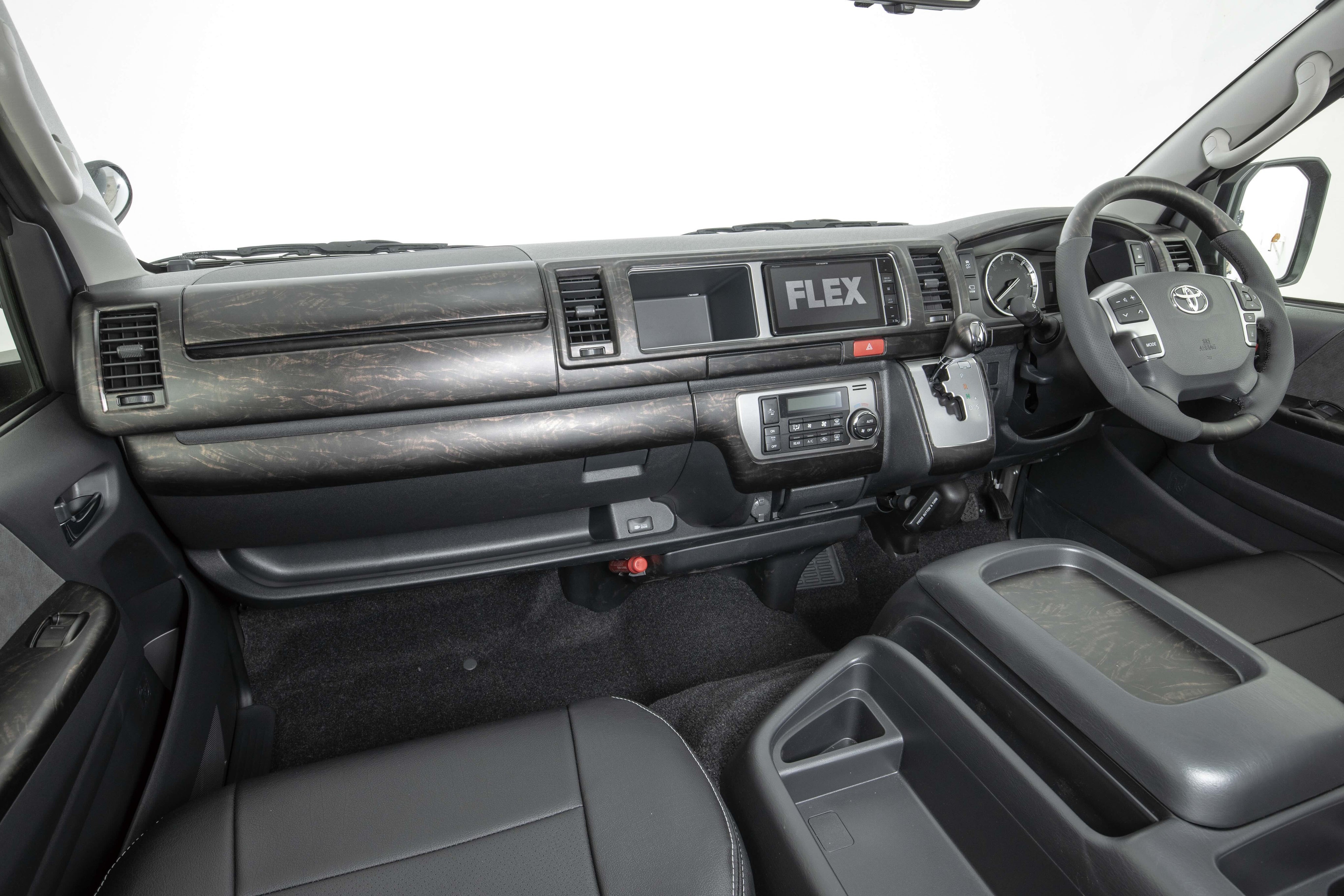 両面テープ施工済みで取り付けも簡単。難燃素材(FR-ABS)を使用し、安全性にも配慮したハイエース200系 ワイド専用モデルです。