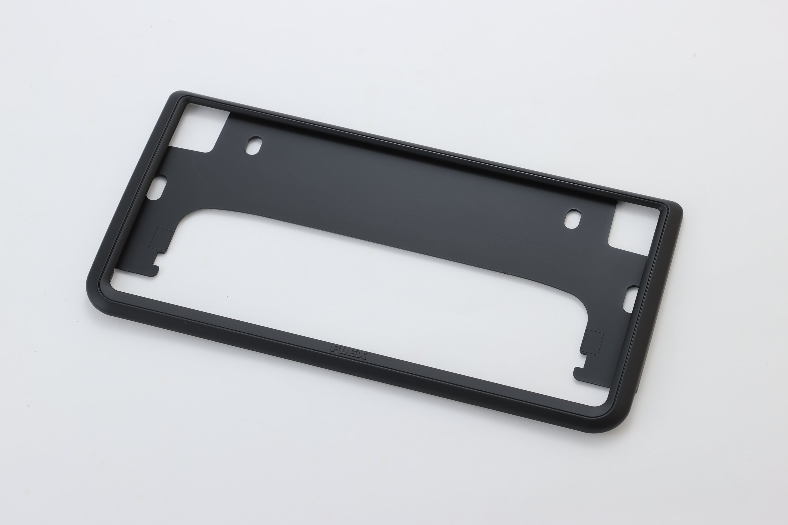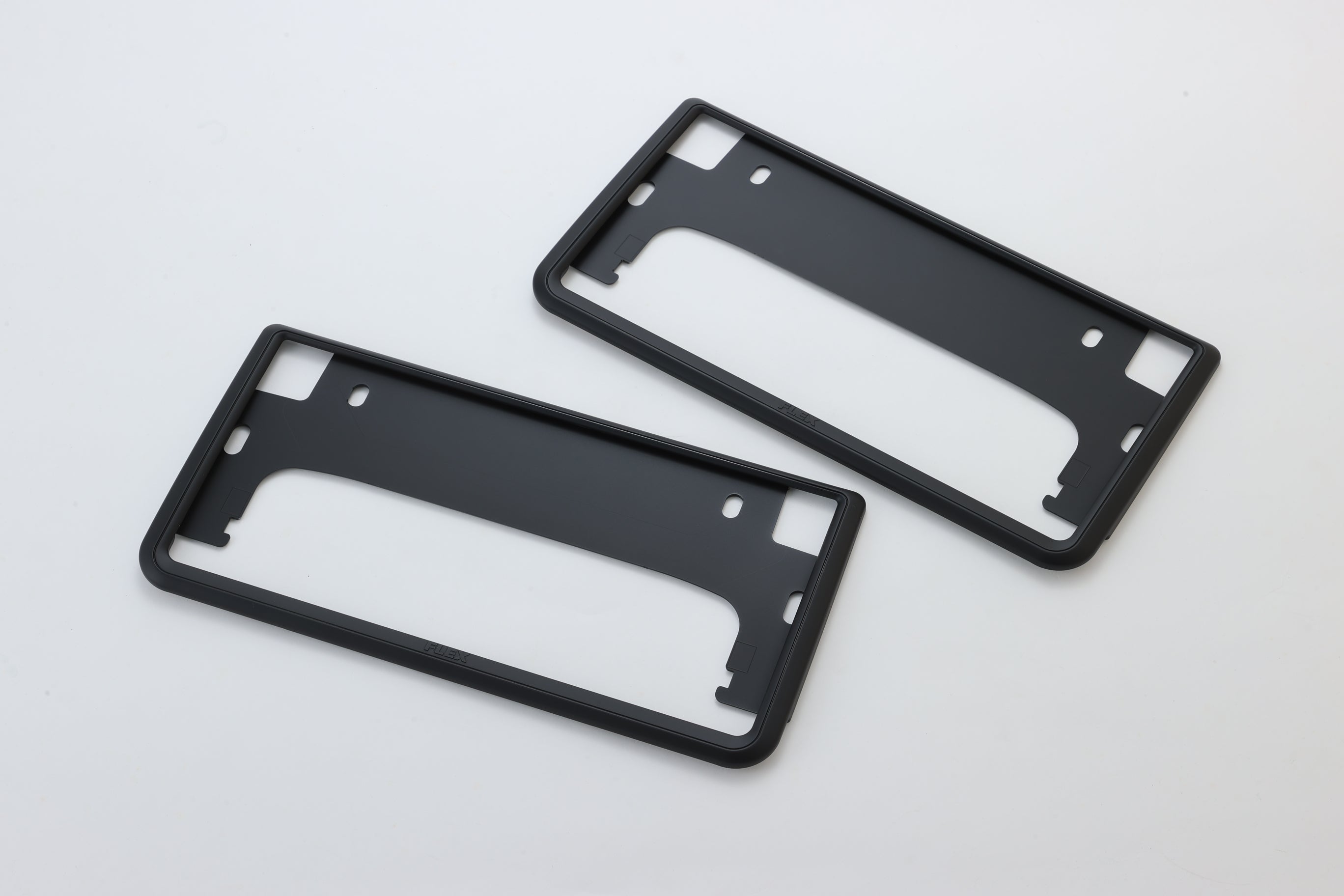 落ち着いた質感のマットブラック仕上げが車の印象を引き締めるナンバーフレーム。