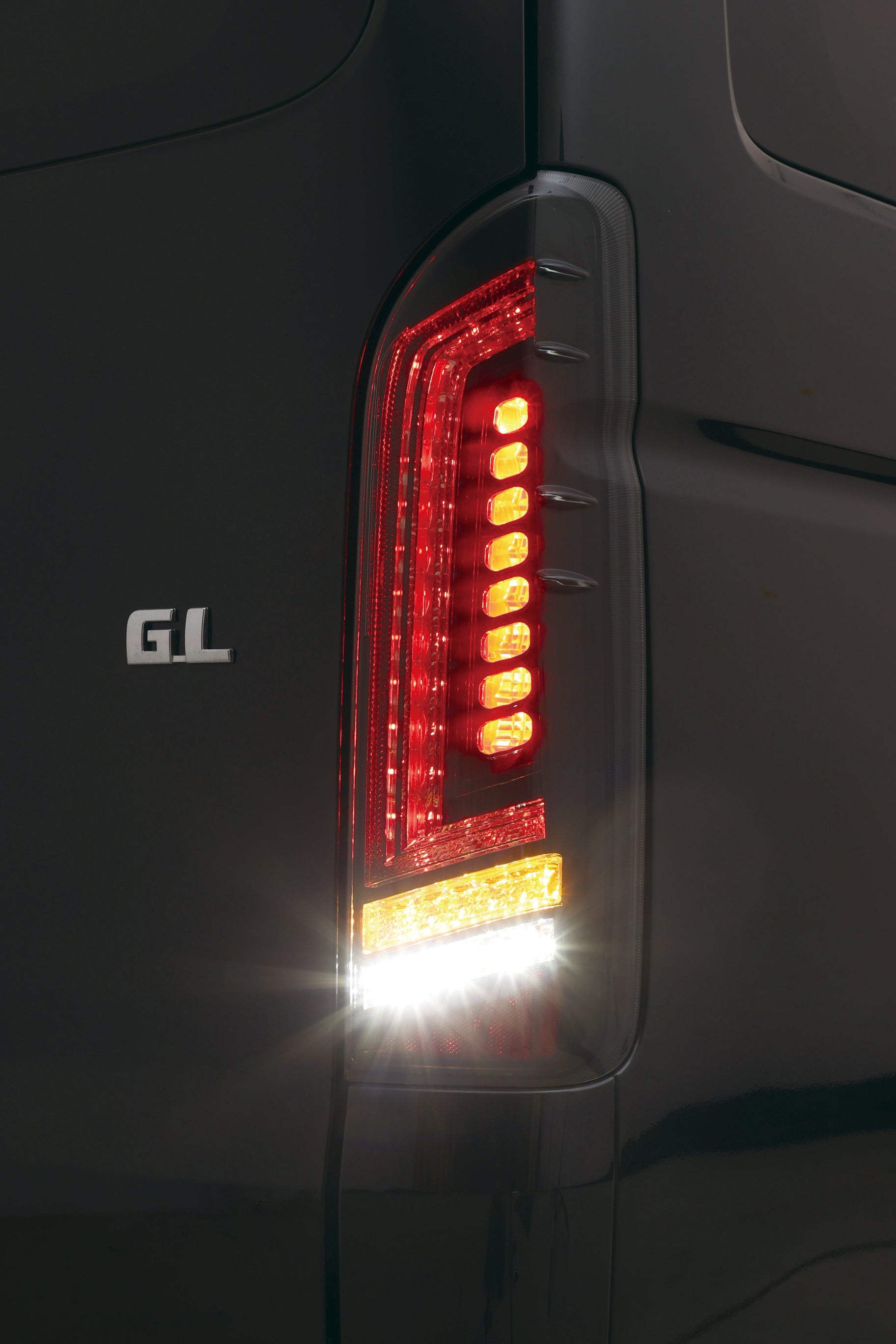 スポーティなカスタムが主流のハイエース200系に、ひときわ強い存在感を与えるのがPRESTIGE_BLACK LEDテールランプです。エアロやローダウンなど、主張のあるスタイルにふさわしいデザインで、リアビューを一気に引き締めます。3本のチューブLEDと30個の高輝度LEDを組み合わせた構成により、消灯時は精悍なブラックフェイス、点灯時には圧倒的な存在感を演出。スモール点灯時は3本のラインがムラなく美しく発光し、走行中でも一目で印象に残るリアスタイルを実現します。さらにブレーキング時にはライン間のLEDが鮮やかに点灯し、後続車へ確実に減速をアピール。デザイン性と安全性を高次元で両立した、ワンランク上のカスタムを叶えるテールランプです。